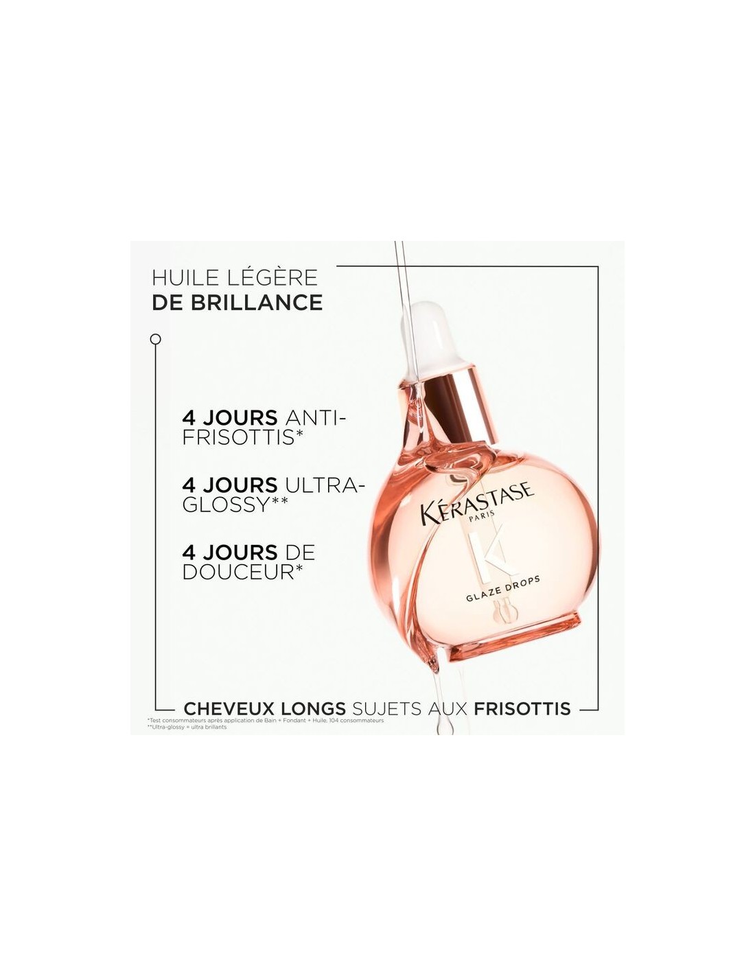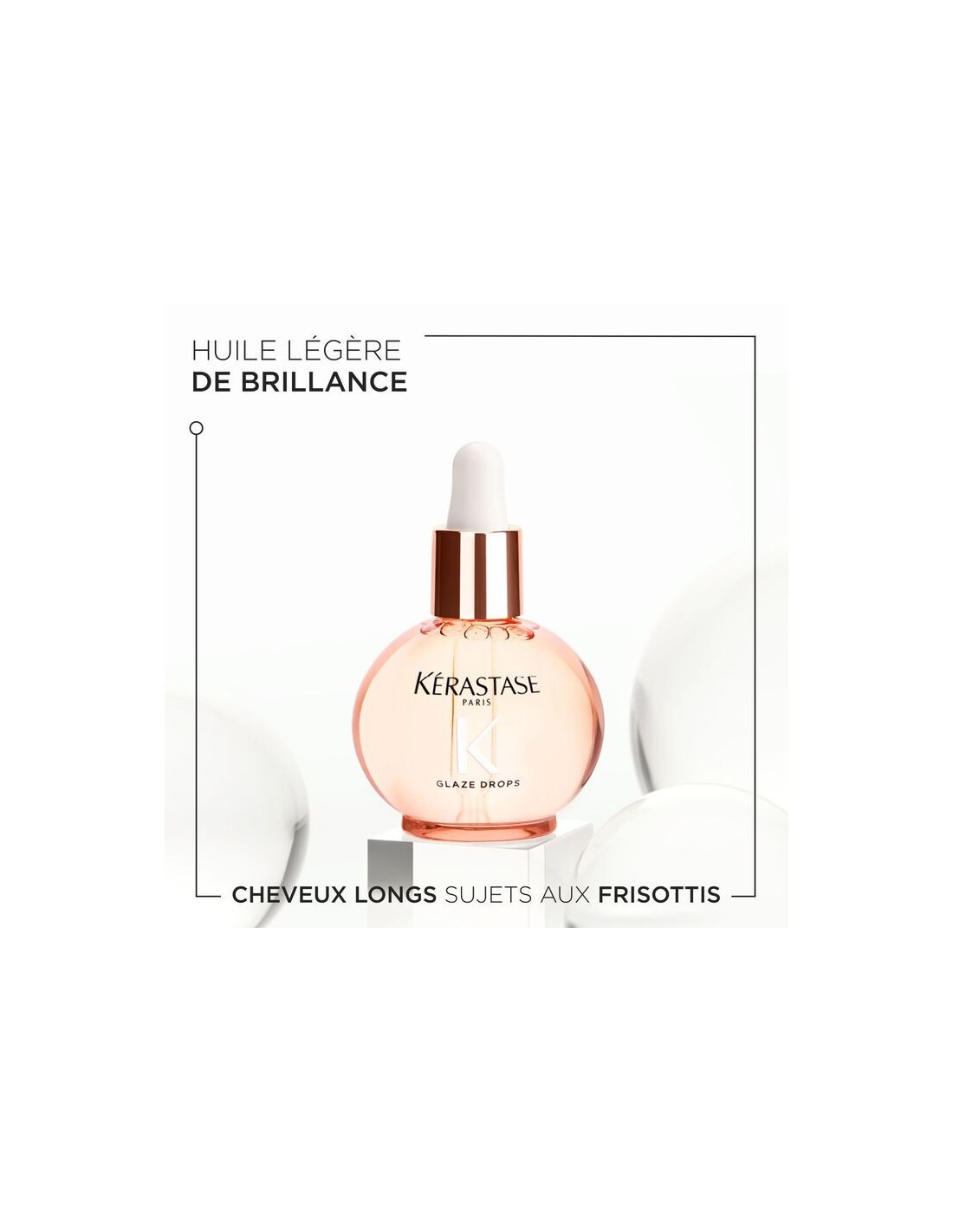Le Glaze Drops de Kerastase est une huile fine et parfumée pour les cheveux longs sujets aux frisottis en recherche de brillance et de douceur. Son compte-gouttes précis délivre la quantité parfaite, pour un effet vernis et une douceur ultime sans alourdissement, le tout sans fini gras en en contrôle des frisottis.