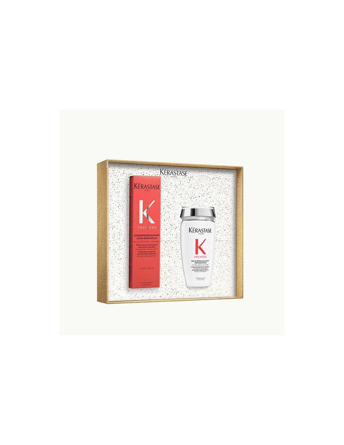 Coffret cadeau Première de Kerastase Paris en édition limitée composé d'un shampoing et pré-shampooing pour les cheveux abîmés